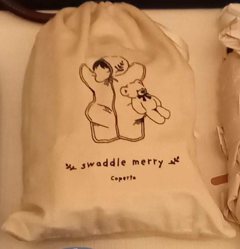 スワドルの袋は、大きさもちょうど良いし、生地の肌触りがよく見た目も可愛い😍
